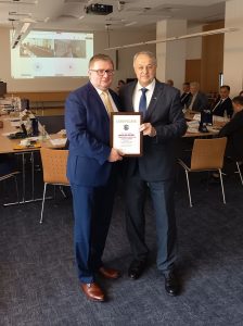 Nasza Izba zyskała fantastycznych partnerów w całej Europie! Podczas dzisiejszego posiedzenia jednogłośnie zaakceptowano nasze członkostwo w Klubie Kijowskim – porozumieniu izb przemysłowo – handlowych z kilkunastu krajów Europy, Kanady i Zjednoczonych Emiratów Arabskich. Klubowi przewodzi najpotężniejsza Izba w Ukrainie – Kijowska Izba Przemysłowo – Handlowa, której Prezes, Mykoła Załutski wręczył nam certyfikaty członkowskie. To też otwiera przed naszym biznesem zupełnie nowe możliwości. A gospodarzem całości jest Izba Przemysłowo Handlowa (IHK) w niemieckim Lipsku.
